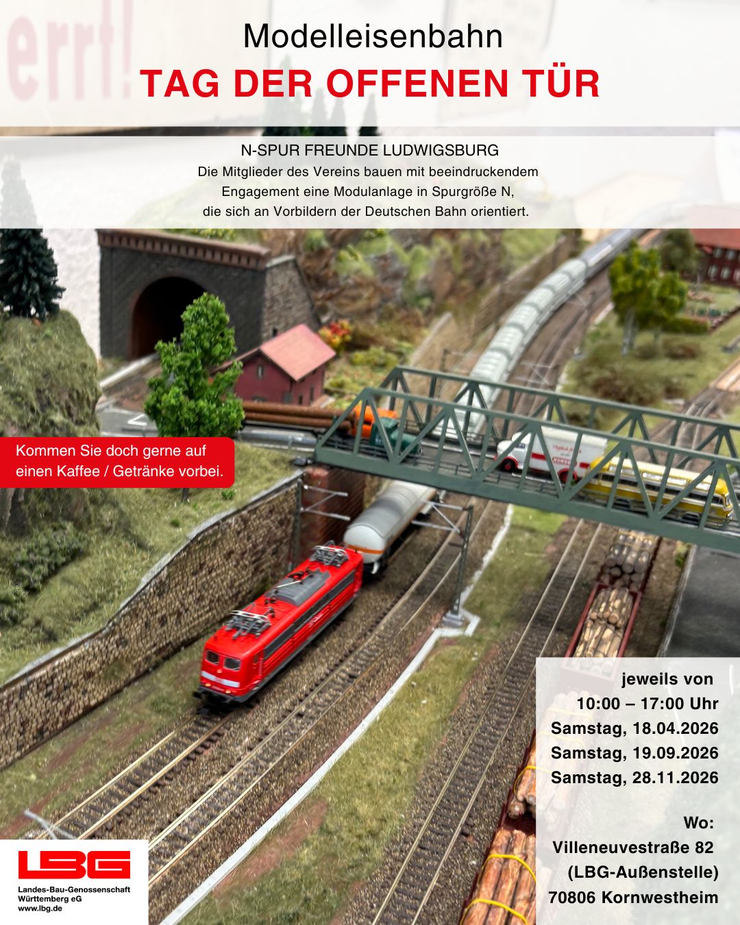Die N-Spur Freunde Ludwigsburg laden zum Tag der offenen Tür in unser LBG-Außenstelle in Kornwestheim ein und geben spannende Einblicke in ihre detailreiche Modellwelt.